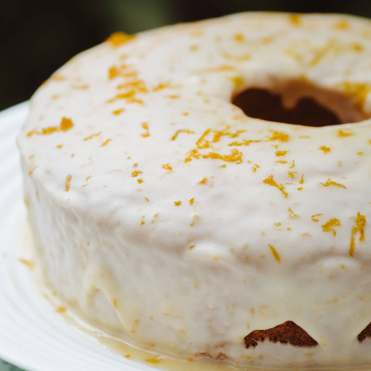 Bolo de vó, daqueles com furo no meio de laranja, bem molhadinho com cobertura de glacê. INGREDIENTES: Farinha de trigo refinada orgânica, açúcar refinado, suco de laranja, fermento químico, óleo de girassol, açúcar de confeiteiro, raspas de laranja. CONTÉM GLÚTEN. ALÉRGICOS: CONTÉM TRIGO. PODE CONTER AVEIA , AVELÃS, AMENDOIM, AMÊNDOA, CASTANHA DE CAJU, SOJA e PISTACHE