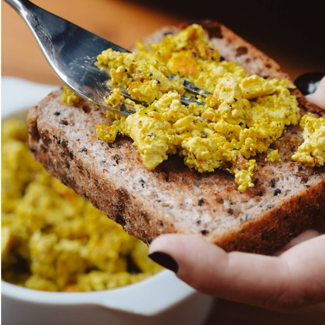 Tofu mexido com especiarias. Aproximadamente 250g INGREDIENTES: Tofu firme, Lemmon pepper, cúrcuma, orégano, vinagre, azeite, sal negro. NÃO CONTÉM GLÚTEN. ALÉRGICOS. PODE CONTER AVEIA , AMENDOIM, AMÊNDOA , AVELÃS, CASTANHA DE CAJU SOJA , TRIGO E PISTACHE.