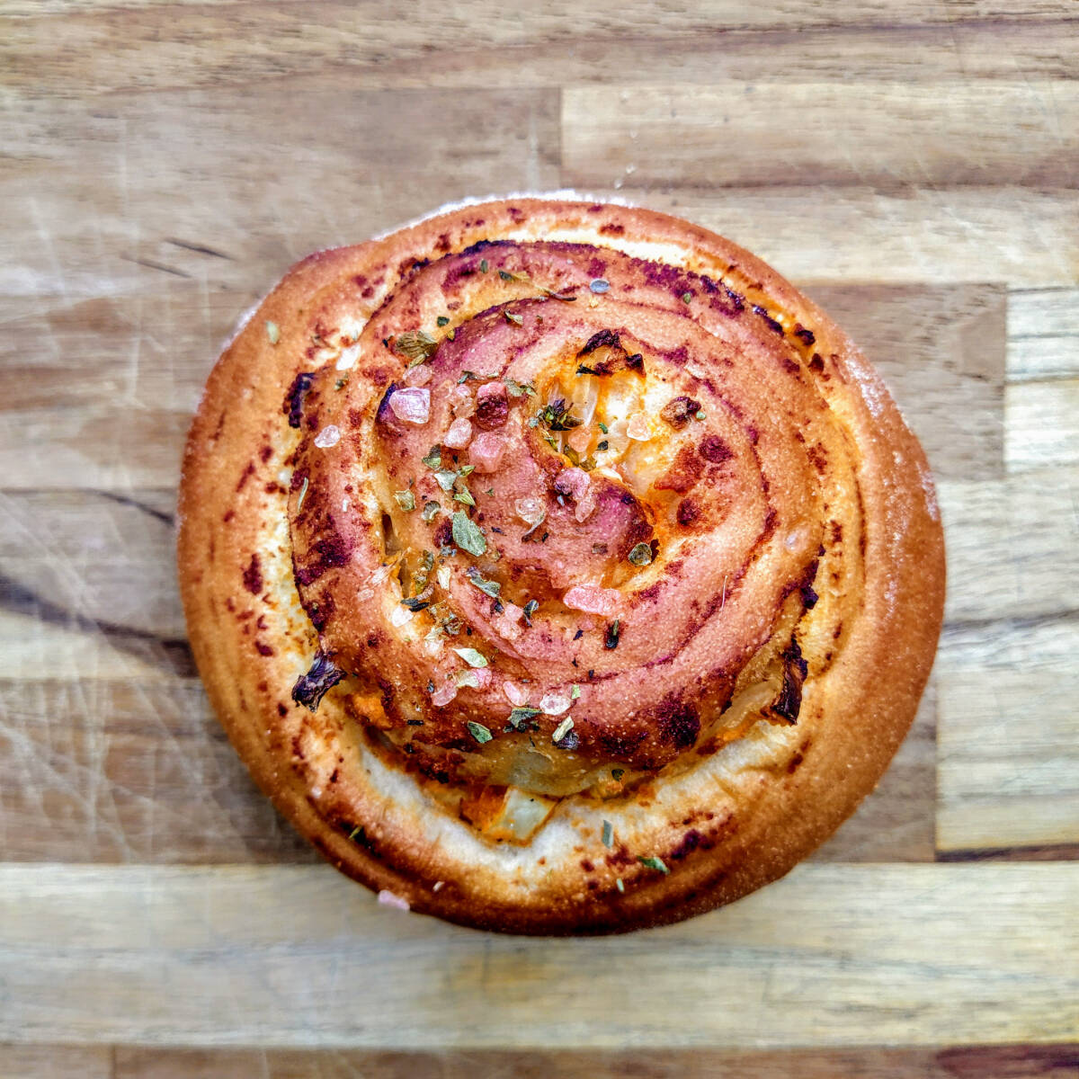 Nosso roll na versão "salgada", recheado com nossa calabresa caseira, molho de tomate, cebola e orégano com sal grosso por cima. Aproximadamente 90g. **Entregue em temperatura ambiente, caso deseje quente, peça o item "na chapa". INGREDIENTES: Farinha de trigo refinada orgânica, fermento biológico seco, açúcar demerara, sal, água, óleo de girassol, cebola, tomate, Feijão Carioca, Polvilho Doce, Polvilho Azedo, Páprica Defumada Pimenta Calabresa, Glúten de trigo. CONTÉM GLÚTEN. ALÉRGICOS: CONTÉM TRIGO. PODE CONTER AVEIA , AMENDOIM, SOJA, AMÊNDOAS, AVELÃS, CASTANHA DE CAJU E PISTACHE.