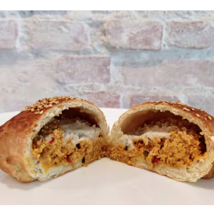 Salgado de frango vegetal com Cream Cheese culinário da Basi.co . Aproximadamente 130g. INGREDIENTES Massa : Farinha de trigo refinada orgânica, fermento biológico seco, açúcar demerara, sal, água, óleo de girassol Recheio: frango vegetal Galpão cucina (Proteína de soja texturizada, proteína isolada de soja, fécula de mandioca modificada, glúten de trigo, goma vegetal, água, óleo de soja, sal, açúcar, colorau, shoyu, sorbitol, corante ponceu, aromas e condimentosnaturais) , pimentão vermelho, pimentão amarelo,colorau, cebola, alho, tempero baiano, creamcheese culinário Basi.co (água, castanha de caju, óleo de coco palmiste, óleo de palma,suco de limão, sal marinho, goma xantana, amido de mandioca e conservantessorbato de potássio). Mostarda, Melado de cana e Gergelim Integral. CONTÉM GLÚTEN.ALÉRGICOS CONTÉM DERIVADOS DE CASTANHA DE CAJU, SOJA E TRIGO. PODE CONTER AVEIA , AMENDOIM, AMÊNDOA E AVELÃS