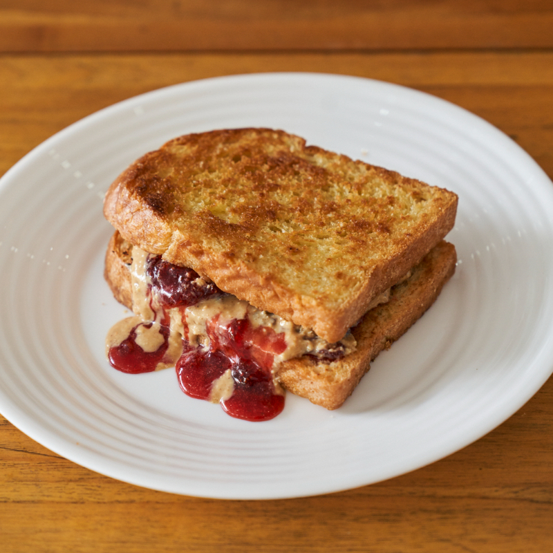 Manteiga de amendoim e geleia de morango caseira no nosso pão de forma branco ou multigrãos. Aproximadamente 240g. INGREDIENTES: Pão de forma tradicional: Farinha de trigo refinada orgânica, fermento biológico seco, açúcar demerara, sal, água, óleo de girassol. no Pão de forma multigrãos :Farinha de trigo refinada orgânica, Farinha de trigo integral orgânica, água, sal, semente de abóbora sem casca, gergelim preto, gergelim integral, linhaça dourada ou marrom, aveia em flocos. Pasta de amendoim, geléia de morango (Morango, açúcar demerara orgânico, limão. CONTÉM GLÚTEN. ALÉRGICOS CONTÉM TRIGO E AMENDOIM. PODE CONTER AVEIA, AMÊNDOA , AVELÃS, CASTANHA DE CAJU E SOJA E PISTACHE.