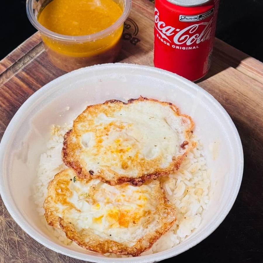 Aquele prato simples e gostoso: dois ovos fritos arroz e feijao (nao contem coca)