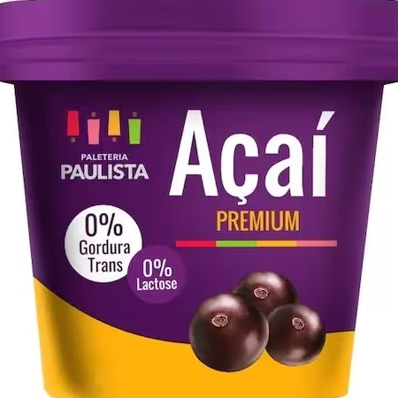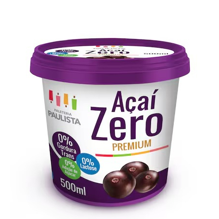 Pote de açaí 500 ml sem lactose e sem gordura trans.