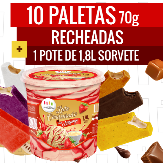 10 Paletas Mini 70g (recheadas) + 1 Pote De Sorvete De Massa 1,8l