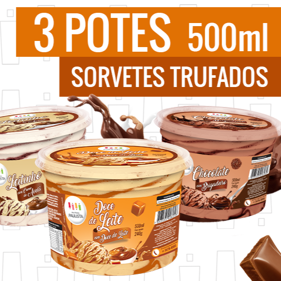 3 Potes De Sorvete 500 Ml
