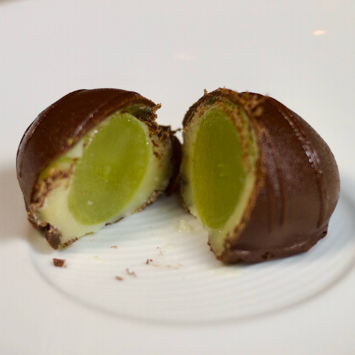 Bombom com brigadeiro de leite recheado com uva verde