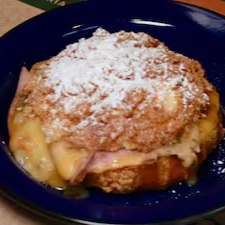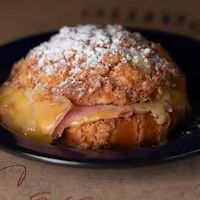 - Folhado da Chef (croissant na chapa com manteiga, redução de balsamico, rúcula, tomate, presunto cru, queijo brie, amendoas laminadas