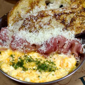 - Ovos Mexidos com Parma – finalizado com queijo parmesão ralado e toast de pão de fermentação natural