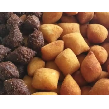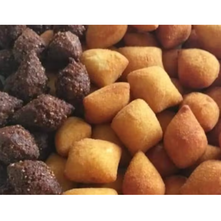 50 mini Salgados sortidos coxinha, risole, calabresa com queijo, kibe e bolinha de queijo (10 gramas) + 50 mini delicioso Churros Sortidos (10 gramas)