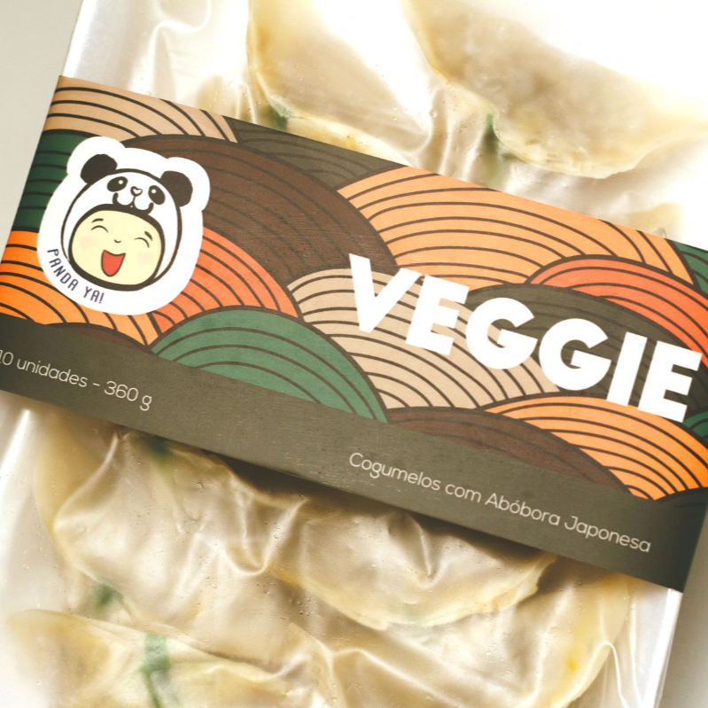 Bandeja com 10 unds de gyoza congelado - cogumelos variados com abóbora kabotian
