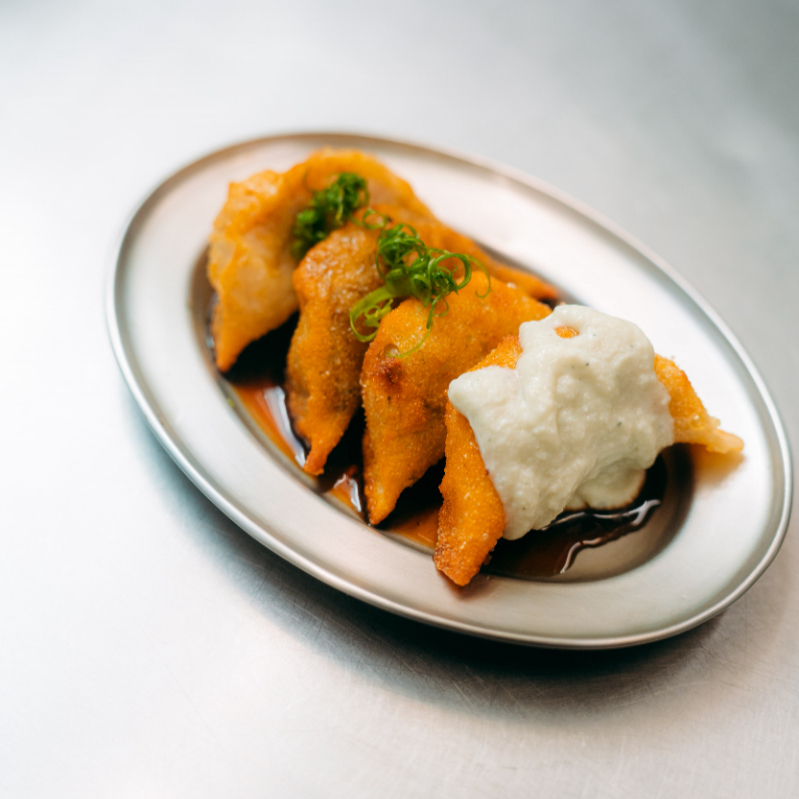 4-unidades Gyoza, Edamame, Repolho e Ricota Cremosa, Acompanha Molho Agridoce