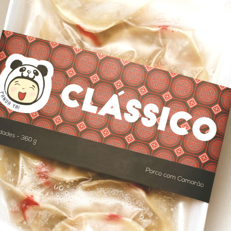 Bandeja com 10 unds de gyoza congelado - carne de porco, camarão e acelga