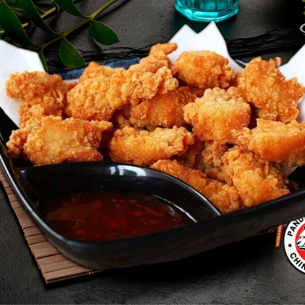 Combinação irresistível de cubos de peito de frango empanados, acompanhados do nosso molho agridoce com abacaxi, cebola e pimentão.