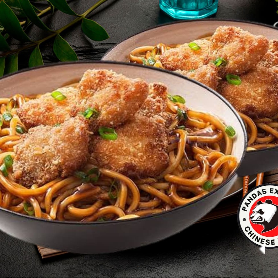 Pedaços de frango temperado e empanado acompanhado de macarrão oriental com molho especial a base de shoyu.