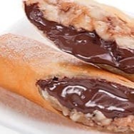 Massa fina recheado chocolate e banana coberto com açucar e canela