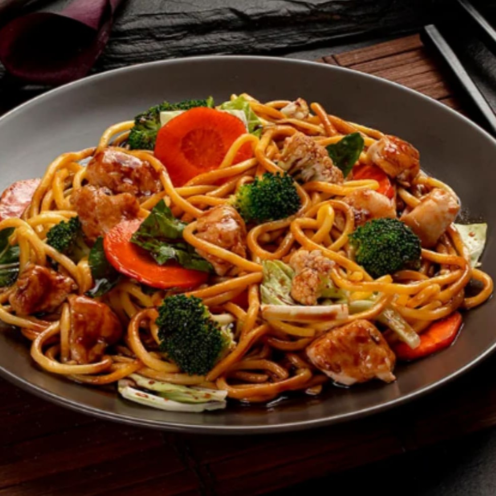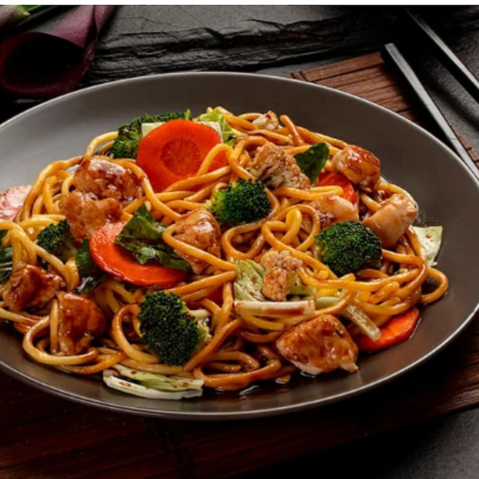Nosso deliciosa macarrão acompanhado de pedaços de frango com legumes selecionado com nosso delicioso molho especial base de molho shoyu.