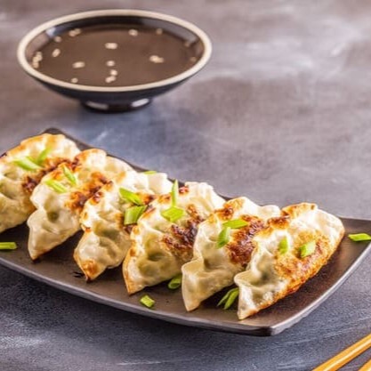 Massa tradicional chinesa fininha (feita à base de farinha, sal e água) recheada com lombo e legumes, finalizada. Acompanha molho. O preparo fica a sua escolha: grelhado ou a vapor.