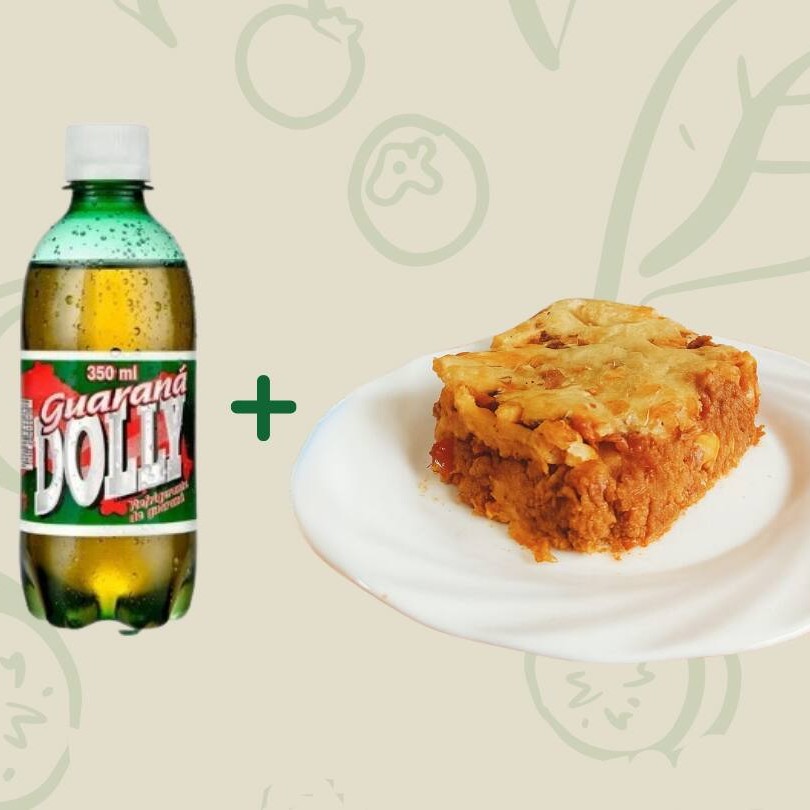 Macarrão à bolonhesa vegano + Dolly 350ml Na compra do combo, o refrigerante sai por apenas R$ 3,00. Praticidade, sabor e preço que cabe no bolso (SEM GLÚTEN)