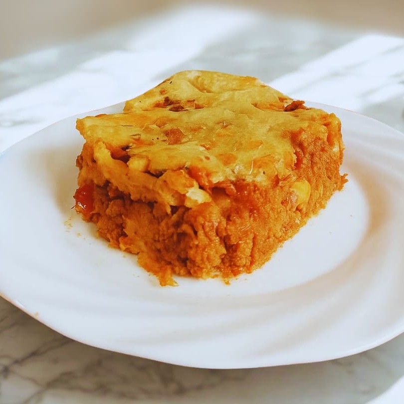 Deliciosa torta vegana de proteína de soja sabor calabresa Ingredientes: Farinha de trigo, Amido de milho, Molho de tomate, Sal, Fumaça em pó, Alho e cebola.