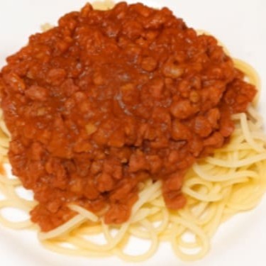 Delicioso espaguete vegano ao molho bolonhesa, com soja selecionada saber calabresa. Ingredientes: Macarrão sem ovos, Molho de tomate, sal, cebola, alho e proteína de soja sabor calabresa. (SEM GLÚTEN)