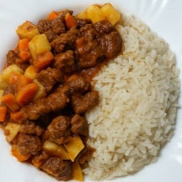 Delicioso Picadinho de Proteína de soja vegano com gostinho de comida caseira! Seu pedido: 500ml de Proteína de Soja, já acompanha arroz no prato. Ingredientes: Proteína de Soja, Pimentão, Cebola, Alho, Molho de Tomate, Fumaça em Pó. (SEM GLÚTEN)