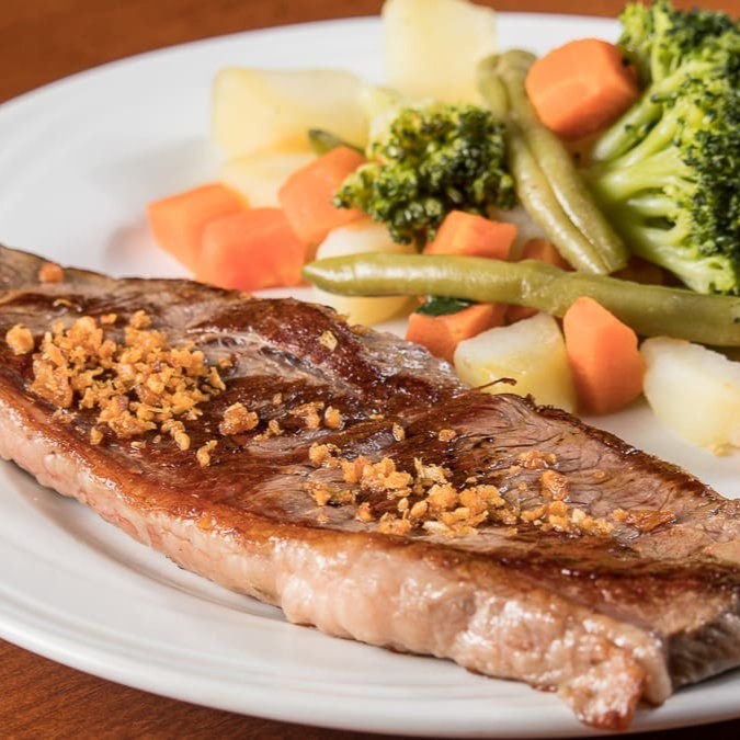 Exclusivo filé mignon grelhado, acompanhado de arroz, fritas e salada ou feijão. Uma experiência gastronômica sofisticada.