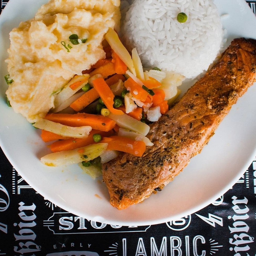 Com legumes e purê de batata