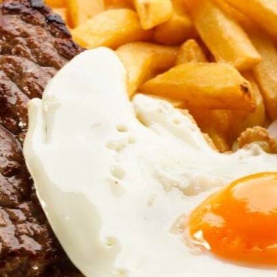 Arroz, Feijão. Contrafilé, Fritas, Ovo e Salada