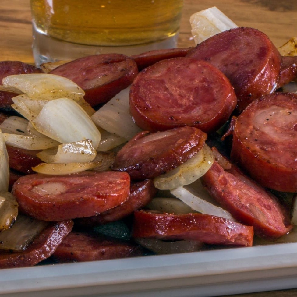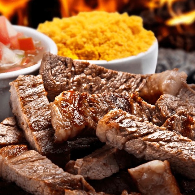 Arroz, Feijão, Calabresa, Cebola. Fritas, Ovo e Salada