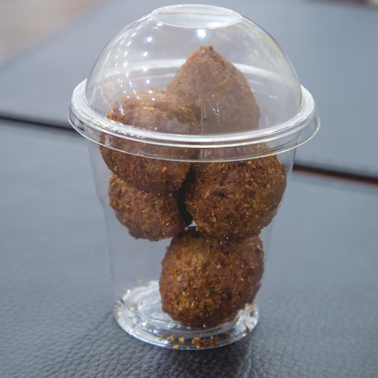 Bolinhos de kibe crocantes por fora, macios por dentro, feitos com trigo para kibe, carne moída temperada com hortelã, cebola e especiarias. Fritos no ponto certo até dourarem — sequinhos e irresistíveis. Perfeitos como petisco ou acompanhamento .