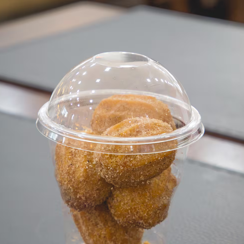 Mini churros crocantes por fora e macios por dentro, polvilhados com açúcar e canela, recheados generosamente com doce de leite cremoso. Servidos quentinhos e irresistíveis .