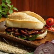 Hambúrguer, bacon, queijo mussarela e pão de hamburguer