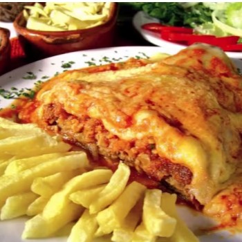 Arroz, Feijão, Contra Filé Parmegiana, Ovo, Fritas e Salada