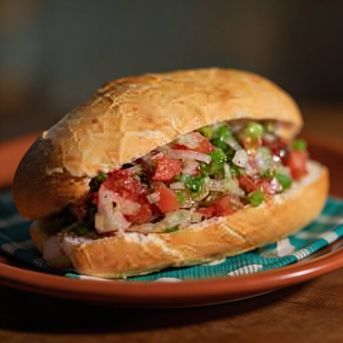 PÃO FRANCÊS, FILÉ DE FRANGO, QUEIJO E VINAGRETE