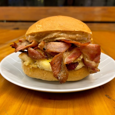 PÃO FRANCÊS, LINGUIÇA, QUEIJO E BACON