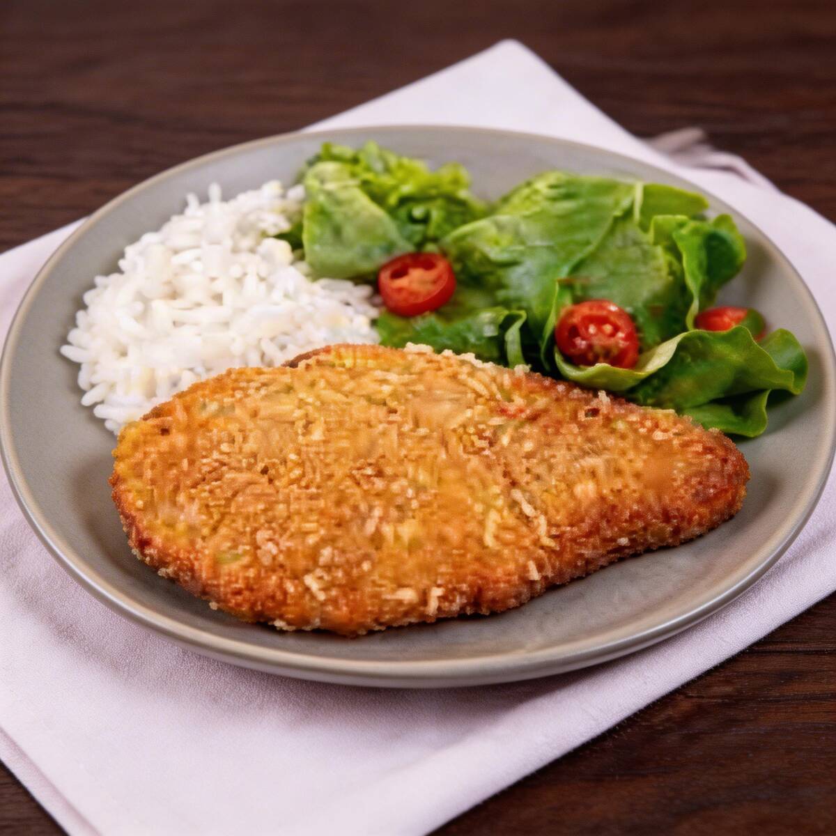Arroz, Feijão, Contra Filé Empanado, Ovo, Fritas e Salada