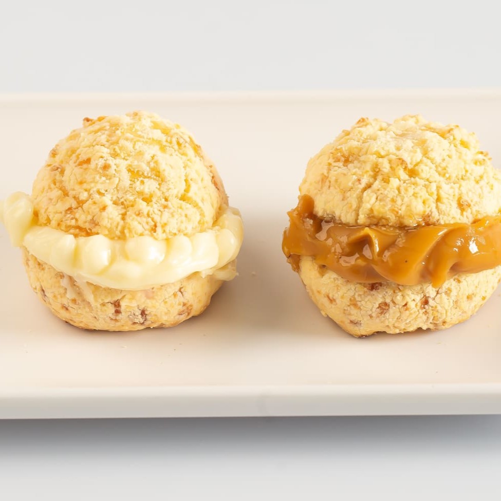 Pão de Queijo crocante, recheado com goiabada cremosa. Uma versão perfeita do famoso 'Romeu e Julieta'. Cada mordida dá lugar a um interior repleto de goiabada cremosa e deliciosamente doce. É o sonho de consumo de todos os nossos clientes. Produto completamente livre de glúten. Aproximadamente 200g