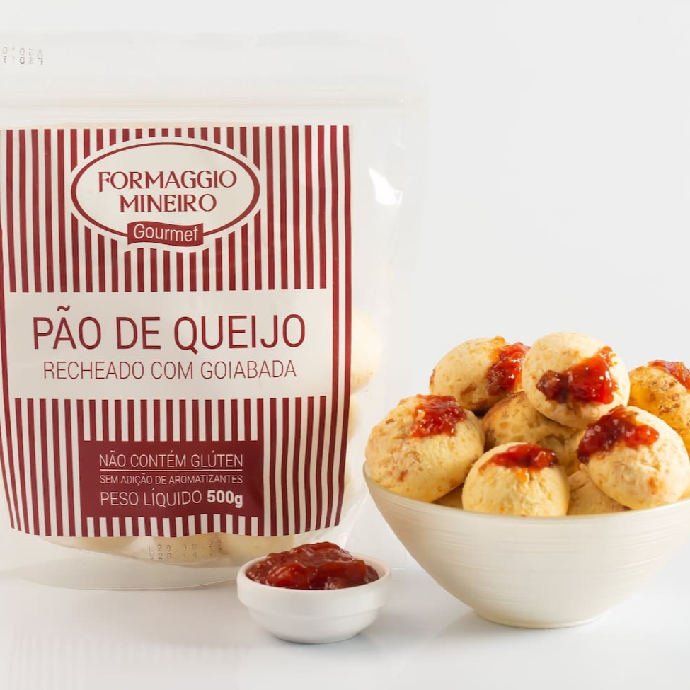 Pão de Queijo crocante, recheado com goiabada cremosa. Uma versão perfeita do famoso 'Romeu e Julieta'. Cada mordida dá lugar a um interior repleto de goiabada cremosa e deliciosamente doce. É o sonho de consumo de todos os nossos clientes. Produto completamente livre de glúten. Contém 20 unidades. Embalagem de 500g