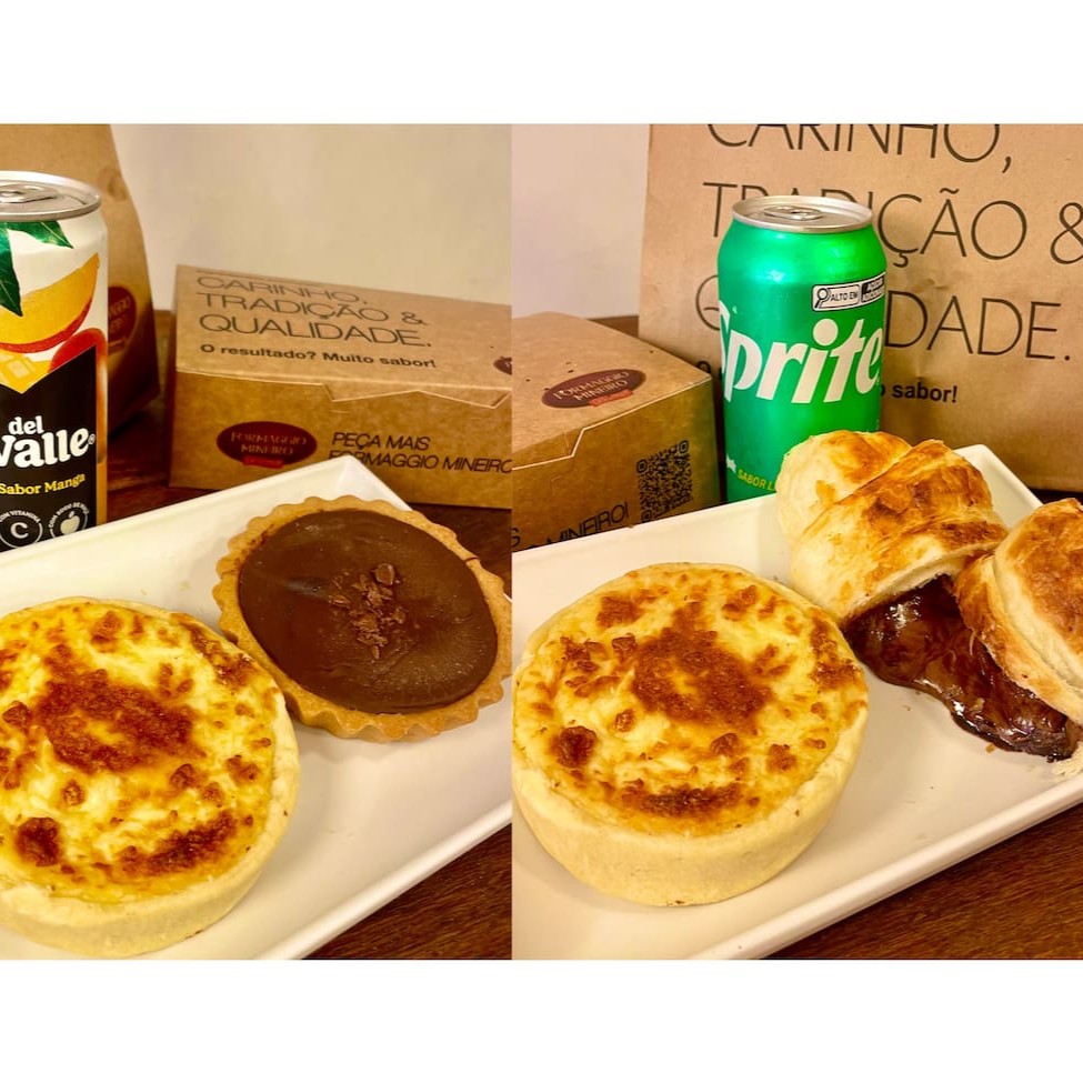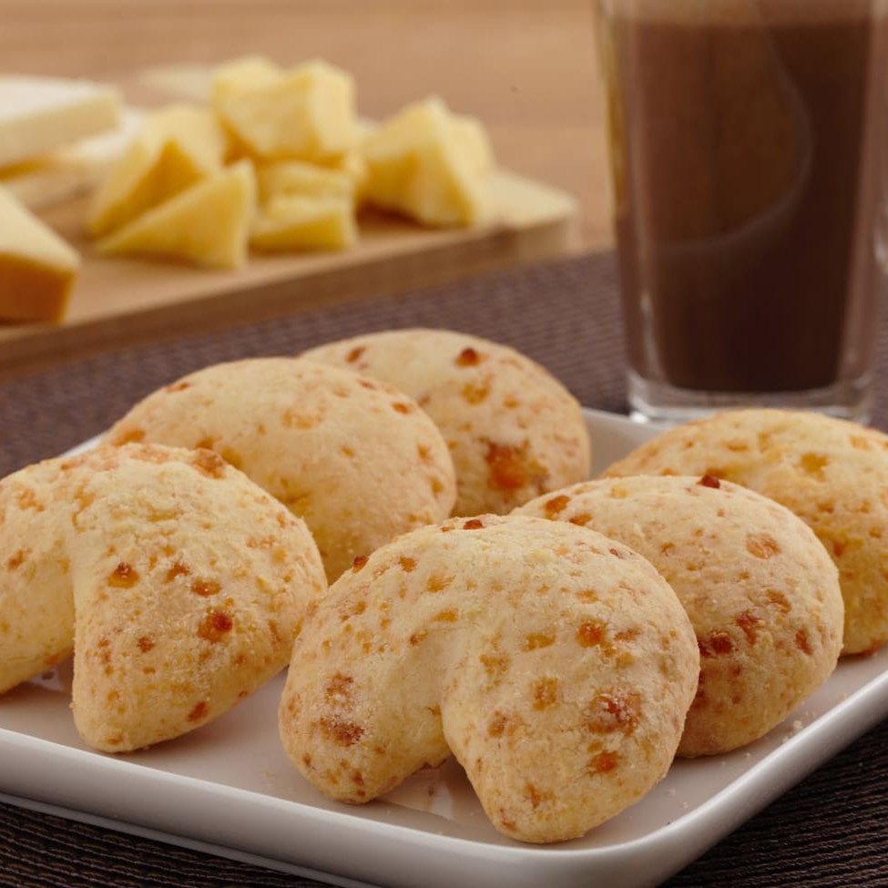 Delicie-se com uma manhã livre de glúten, com uma generosa porção de 10 pães de queijo, harmonizados com uma refrescante bebida de sua preferência. Oferecemos a oportunidade de selecionar 2 dentre nossos principais e irresistíveis sabores de pães de queijo e combina-los em uma porção de 10 unidades: o clássico Tradicional, o nutritivo Multigrãos, a exótica Chipa 3 Queijos, o sofisticado Gorgonzola, e o delicioso pão de queijo de Goiabada. Acrescente ainda um complemento a sua escolha para recheá-los (requeijão ou doce de leite). Esta opção é ideal para começar o Dia com um impulso de energia e uma explosão de sabor.