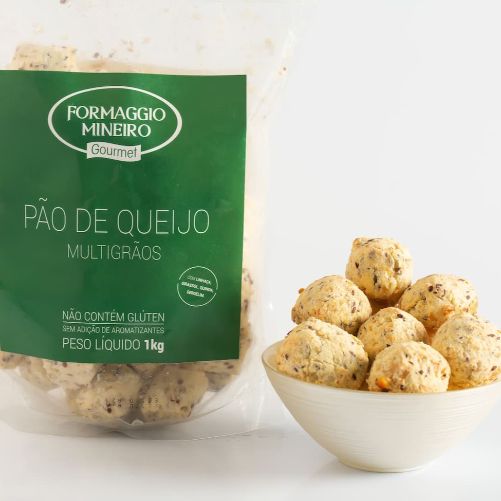 Delicioso e saudável! A escolha perfeita para aqueles que procuram sabor mas não abrem mão de uma alimentação saudável e funcional. Elaborado os mesmos queijos do nosso pão de queijo tradicional, contém linhaça, gergelim, quinoa e semente de girassol na massa. Contém 40 unidades. Não contém glúten. Embalagem de 1kg