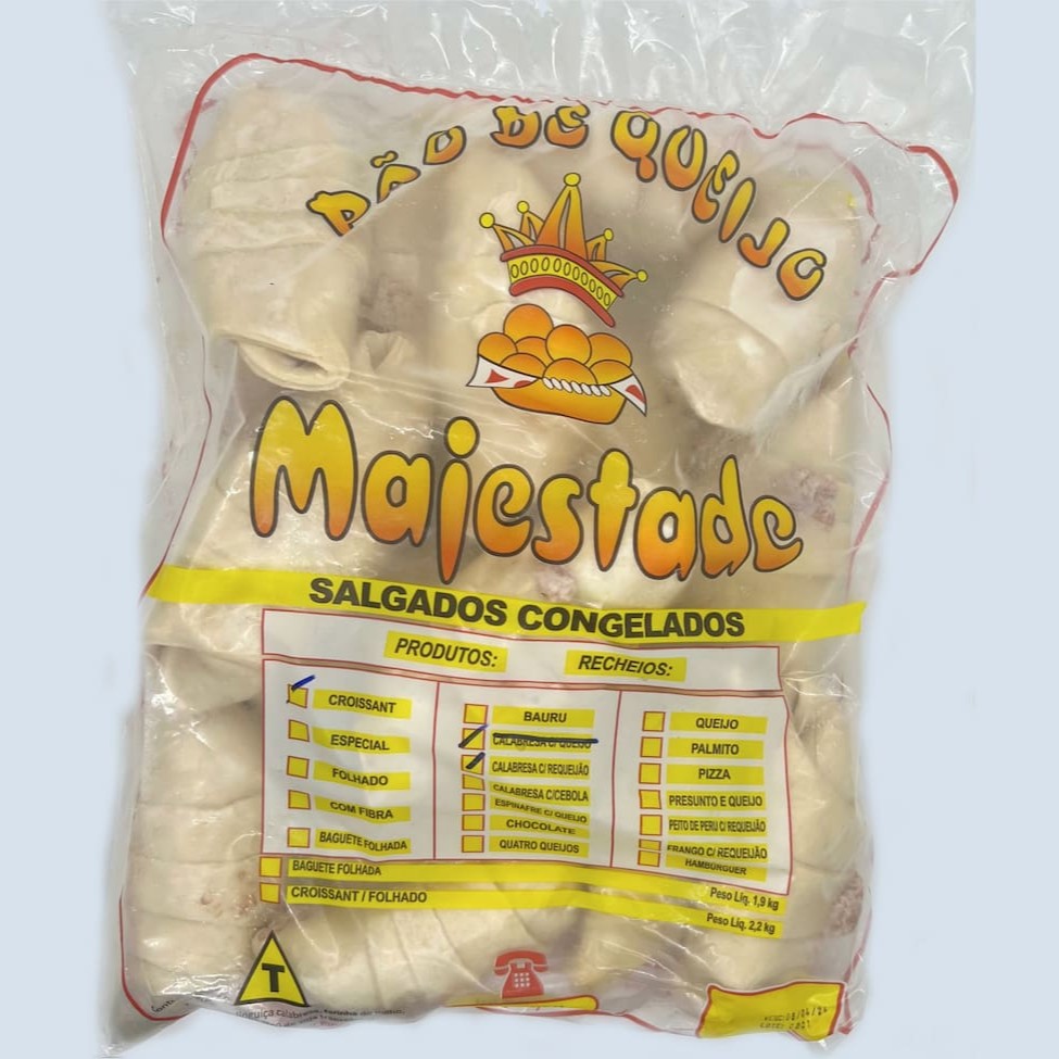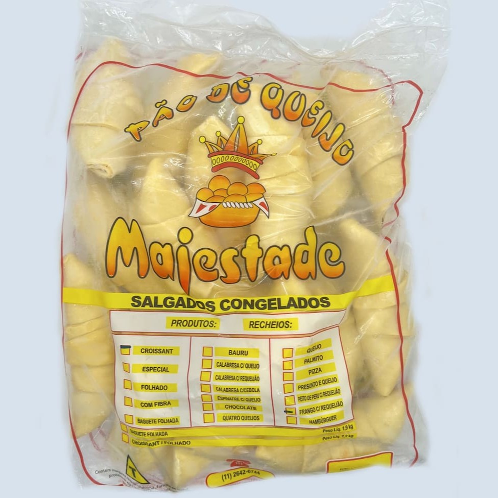 Produto Congelado. Pacote de 2,2kg, contém cerca de 16 unidades. Modo de preparo: 1- Retire os salgados congelados, disponha-os em uma forma para descongelar em temperatura ambiente de 2 a 3 horas. 2- Pré-aqueça o forno por cerca de 10 minutos a 150c. 3- Coloque os salgados no forno, deixe assar em temperatura 180ºc para poder ocorrer o processo de fermentação, após assar elevar a temperatura e aguarde dourar a parte de cima e retire.