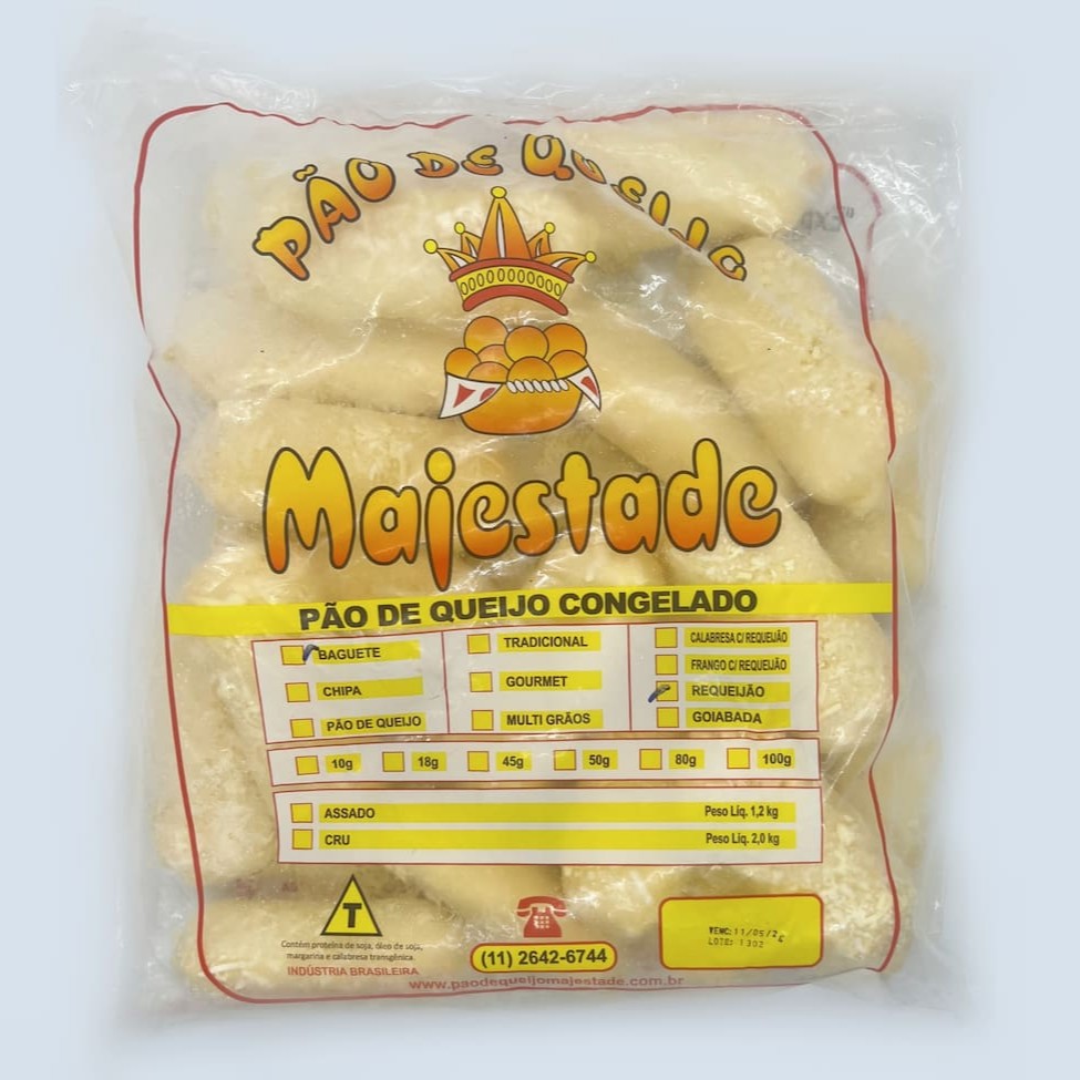 Pacote congelado de Pão de Queijo Recheado Requeijão (baguete) de 2,2kg.