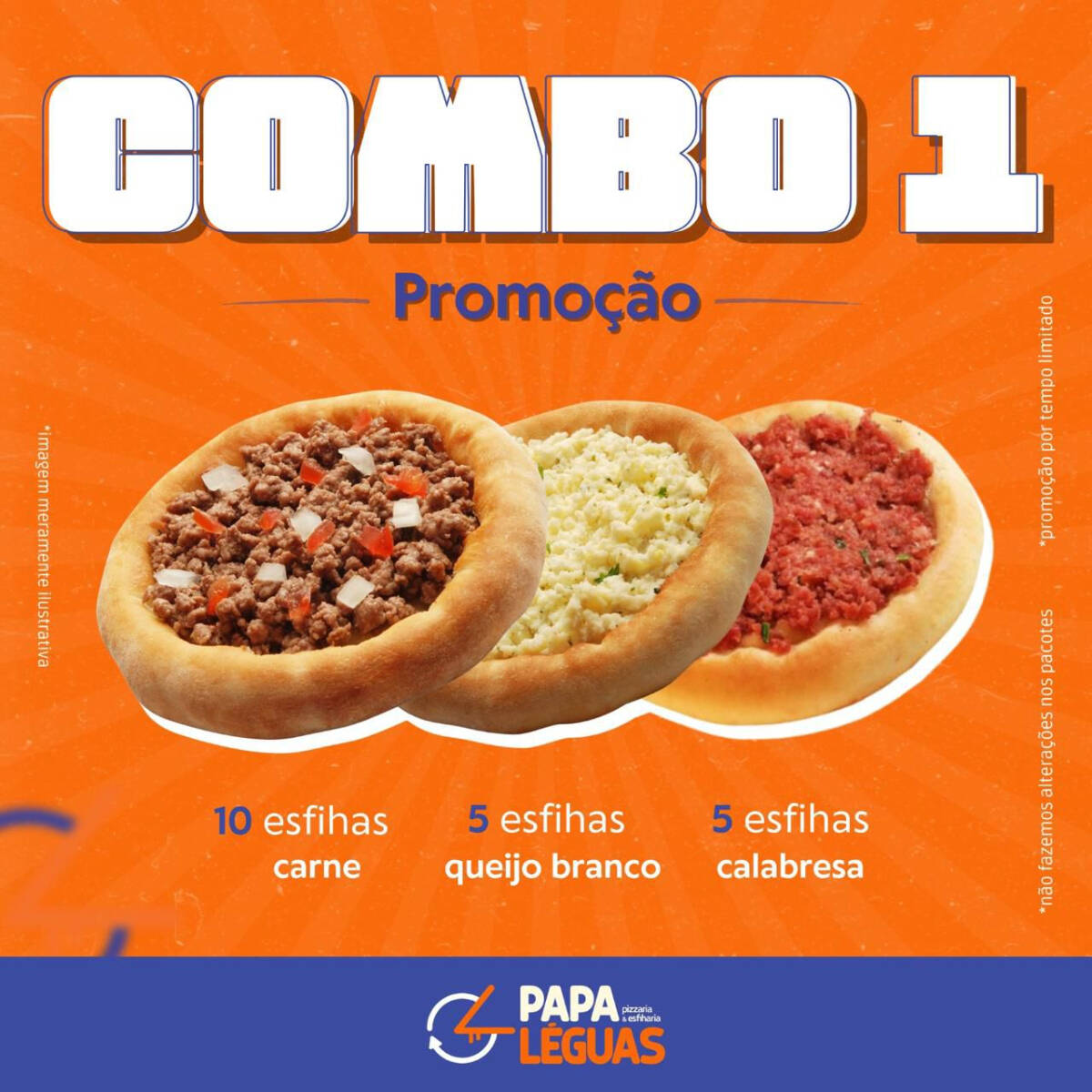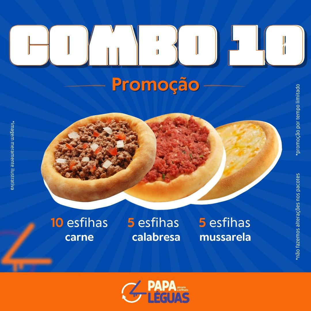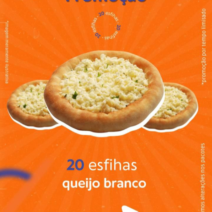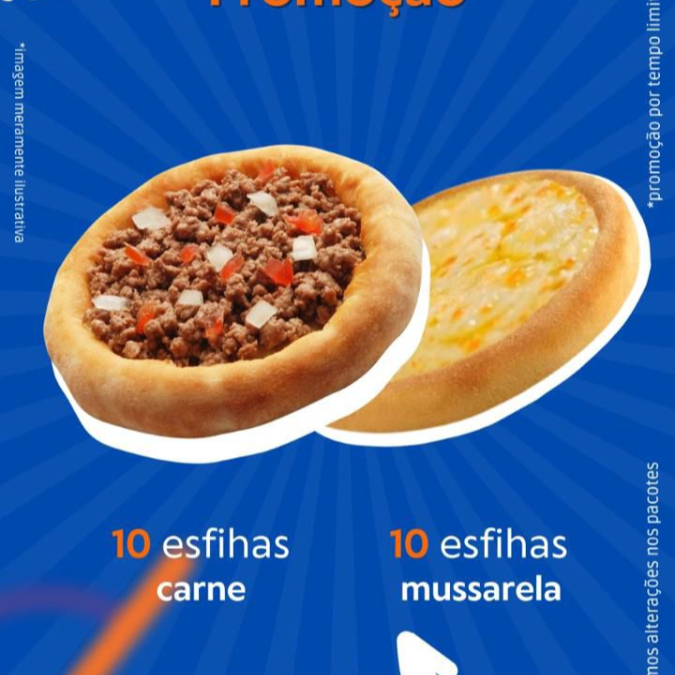 10 esfihas de carne, 5 calabresa e 5 queijo branco