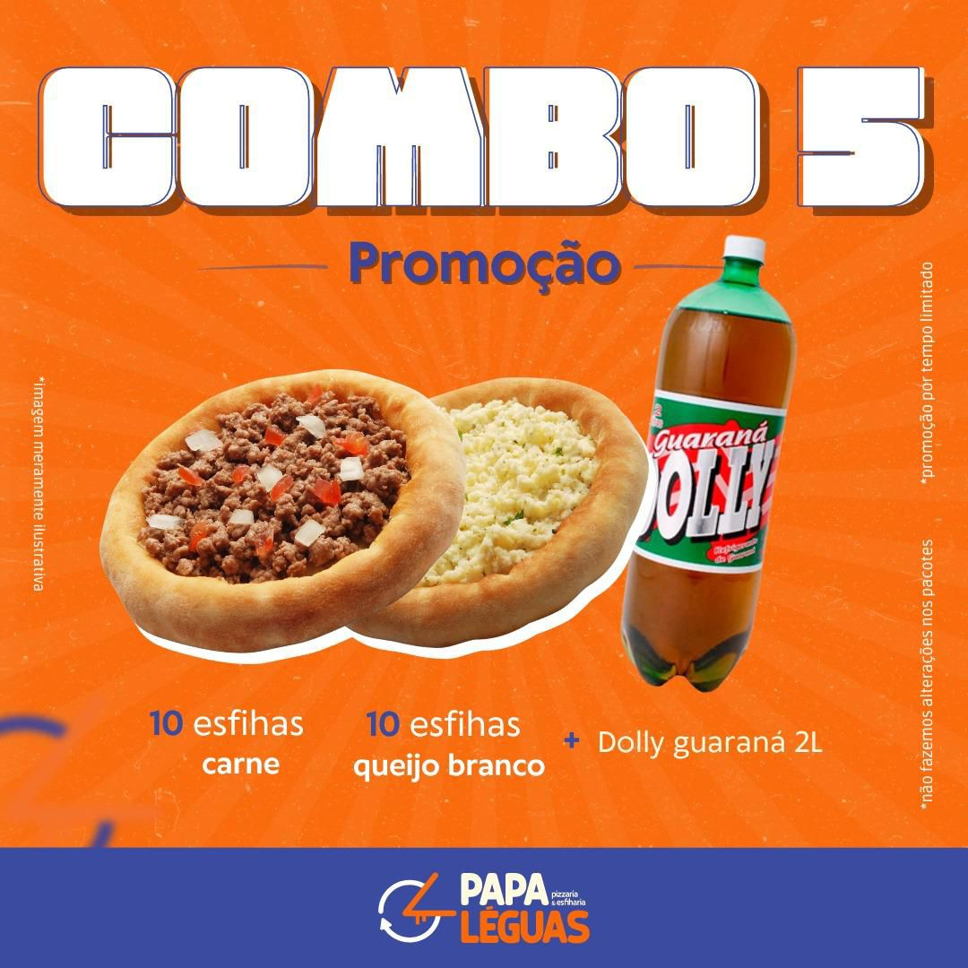 5 esfihas de carne, 5 calabresa, 5 mussarela + 1 coca cola2l