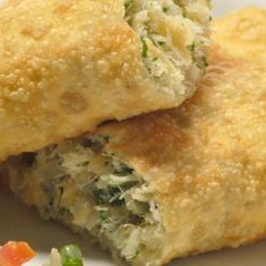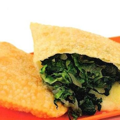 Pastel de Escarola com calabresa e queijo musarela. Obs: Não fazemos alterações de ingredientes.