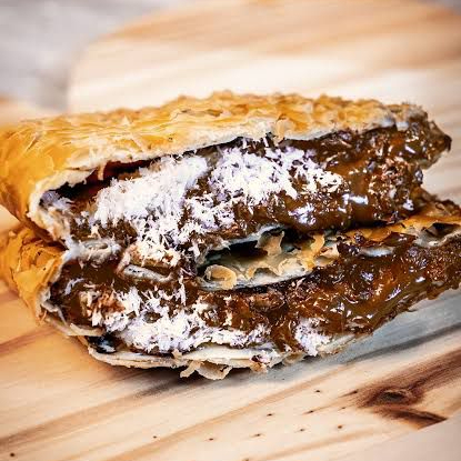 Pastel recheado de Chocolate com coco. Obs: Não fazemos alterações de ingredientes.