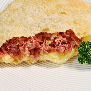Pastel recheado de carne seca com queijo mussarela. Obs: Não fazemos alterações de ingredientes.