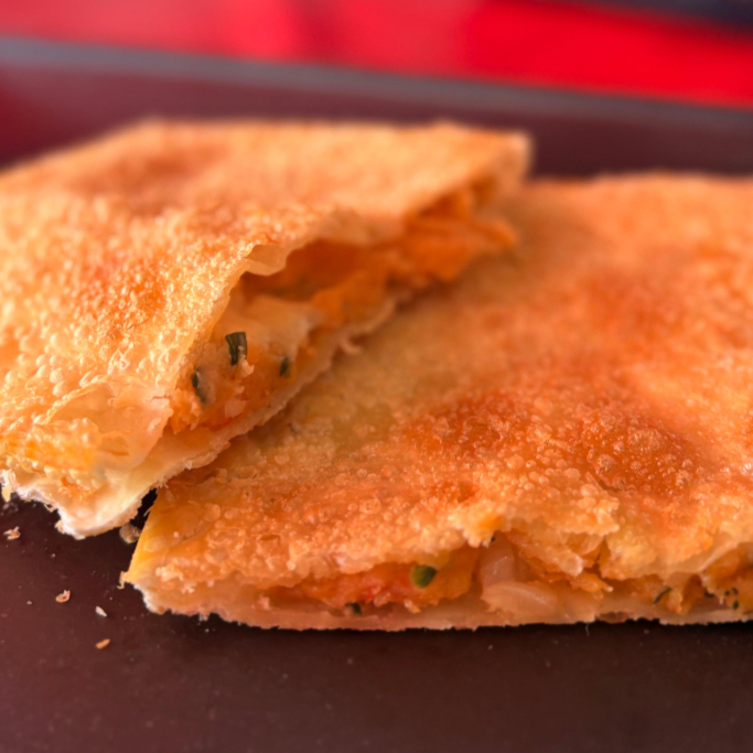 Pastel de Queijo Mussarela com massa sequinha e crocante.