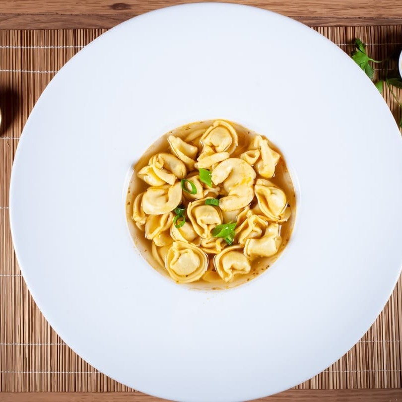 Tradicional capeletti de massa fresca italiana com recheio de carne ao pesto.