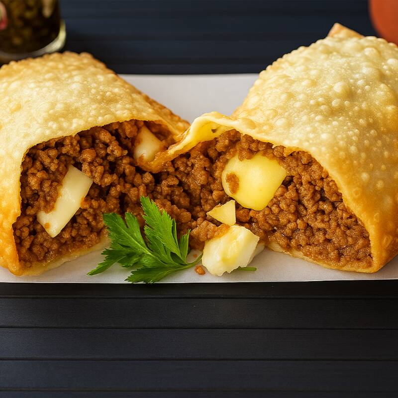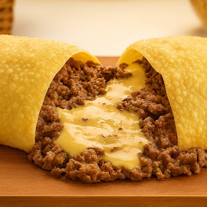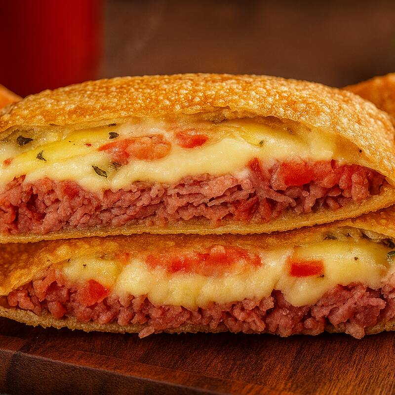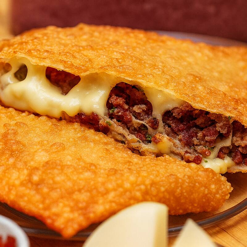 Pastel De Carne Com Catupiry E Borda De Cheddar (30 Cm)